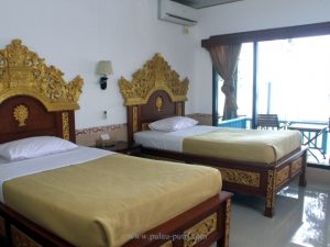 Pulau Putri punya penginapan yang udah setara resort. Kamarnya langsung menghadap laut, lengkap dengan fasilitas modern kayak AC, TV, kamar mandi dalam, dan balkon pribadi. Bangun tidur langsung liat laut dari jendela kamar? Bisa banget.